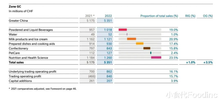 2022年雀巢中国品类表现概况