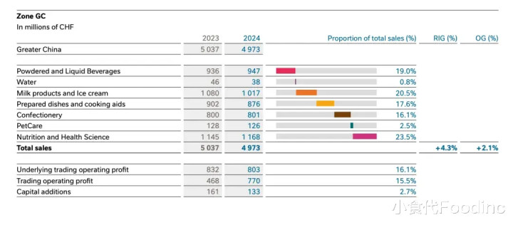 2024年雀巢中国品类表现概况