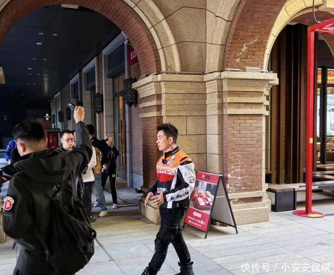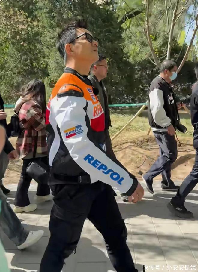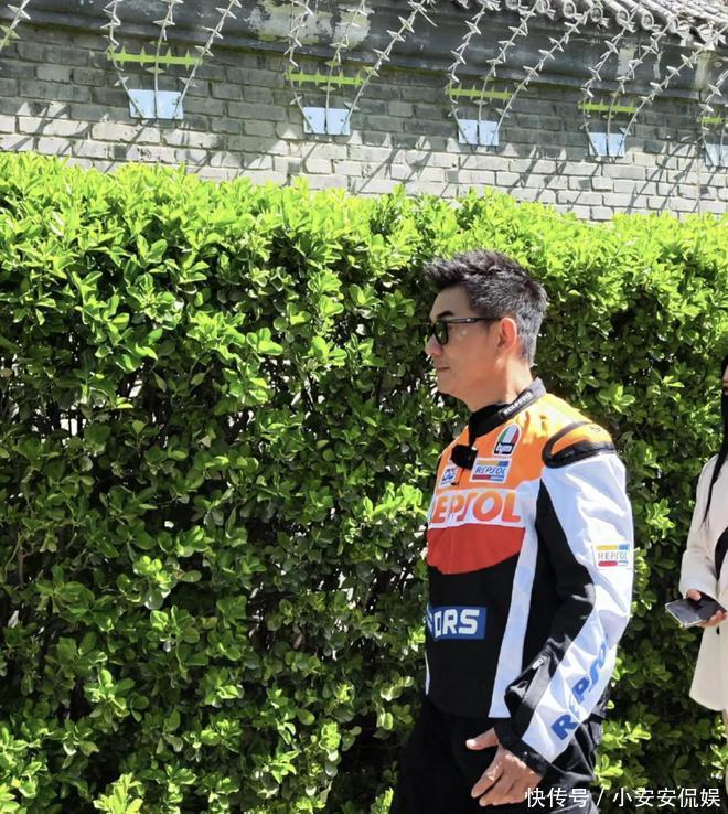 当天任贤齐穿了一身骑手服,戴着大墨镜,这身打扮非常酷,走在大街上很拉风,非常显眼!